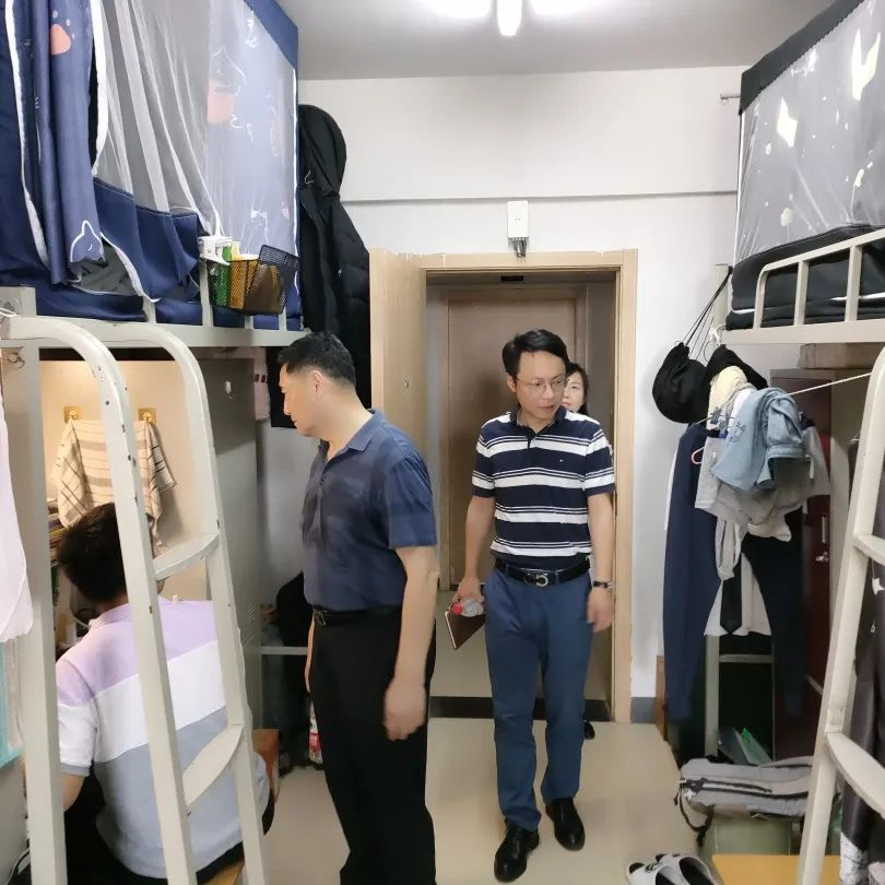 紧接着刘董事长一行走访了英国威廉希尔英文官网员工宿舍,深入了解员工生活环境,仔细检查宿舍清洁卫生,叮嘱同学们要营造积极健康的宿舍文化。刘董事长提醒同学们要合理安排时间,在认真学习的基础上,积极参加社会实践活动。同时要提高个人疫情防控意识,做好常态化疫情防控措施。宿舍走访拉近了校院领导与员工之间的距离,给同学们带来温暖的人文关怀。
