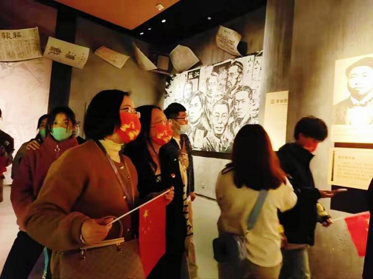 雨中的辛亥革命博物馆,庄严肃穆,仿佛打开了时光隧道带领同学们回到了百年前的中国。师生党员们在博物馆讲解员的引导下,先后参观了“晚清中国”“武昌首义”“辛亥百年”等五个展厅。当看到橱窗里展示的中国签署的各种不平等条约时,党员们深刻感悟到“弱国无外交”这句话的内涵;当看到展厅里陈列着的起义军照片时,党员们感受到先进爱国人士愤慨救国、慷慨就义的决心。党员同志们沉浸式地体验到了危机重重的晚清中国与辛亥革命的艰难历程,缅怀追忆了“辛亥百年”来中国共产党由小到大,由弱到强,在实现民族伟大复兴道路上的艰苦奋斗。