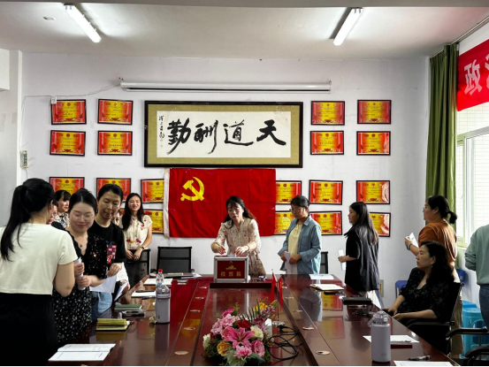 在教师党支部全体党员的见证下,监票人江莲全程认真监督下,计票人罗笑含现场唱票统计,整个过程公开透明,最终选出新一届教师党支部3名新委员为吴蕾、俞丽英、代迪。