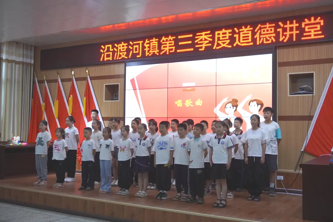 “手拉手跟随幸福走,道德新风吹遍每个角落,手拉手跟随幸福走,和谐之光点亮人人心头……”全体同学带来的合唱歌曲《道德新风歌》,用充满童趣的声音弘扬着遵守社会道德、提高个人品德的观念。