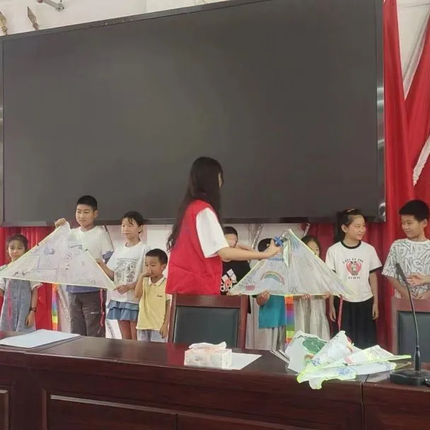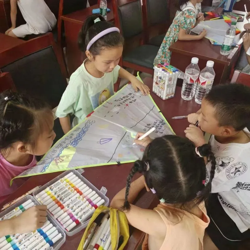 讲诉完自己的梦想后,志愿者们带领小朋友把梦想写在心形便利贴上,在教室门口粘成了一个爱心形状,提醒着自己现在的认真学习就是对梦想的追逐。随后,志愿者们为小朋友们准备了风筝,让他们在风筝上画上自己喜欢的画、把自己的梦想写在了风筝上。下午的骄阳似火,点燃着小朋友们内心逐梦的火苗,他们在操场上放飞风筝、追逐梦想,用一根细细的线,牵引着自己的未来。希望这个梦想可以成为小朋友们人生道路上的路灯,指引着他们前行的道路。