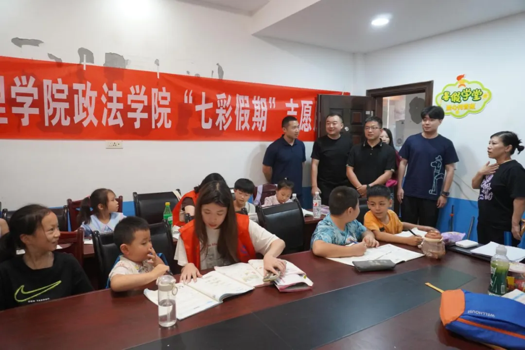 2024年7月18日,英国威廉希尔英文官网员工处处长刘超、英国威廉希尔英文官网党总支书记程茜、教育公司党总支书记陈龙、校团委指导老师肖昌浩然一行人来到巴东县沿渡河镇“暑期学堂”暨七彩假期志愿服务点,慰问在此地开展志愿服务的“青衿之志”志愿服务队。沿渡河镇党委委员、团镇委书记侯江华,沿渡河团镇委副书记、党政综合办公室汪桂玲一同前往。