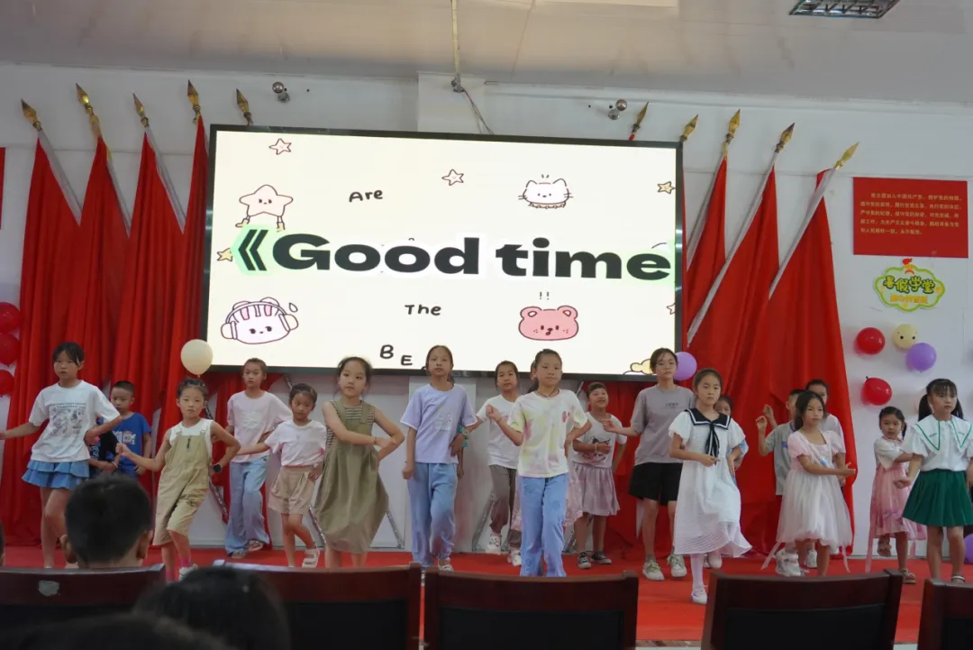 参与暑假学堂的每一个小朋友都踊跃上台,共同参与集体舞蹈,用自己稚嫩的舞姿记录下这十五天的“好时光”。