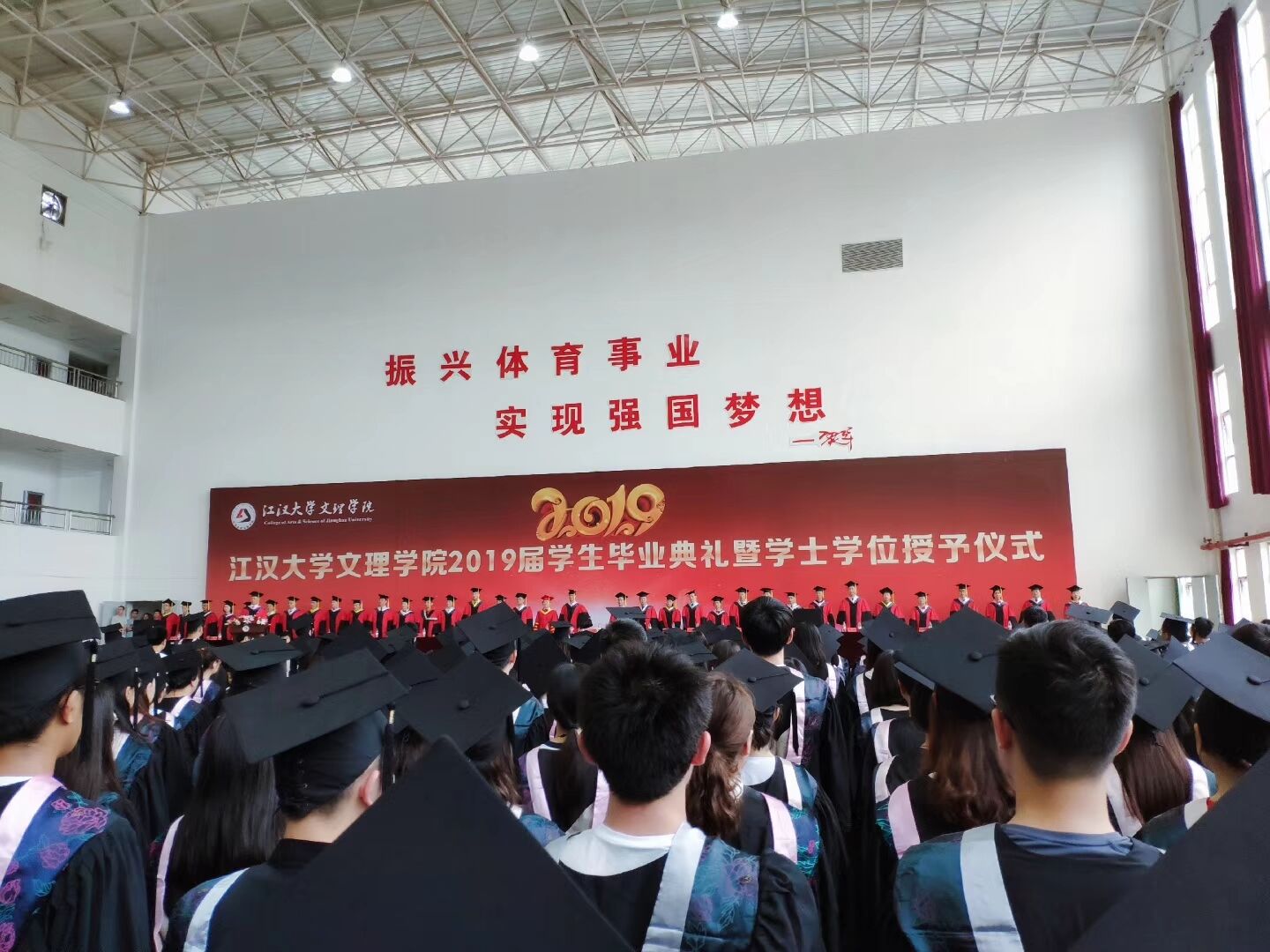 数载春秋,几轮岁月,光影流年下又是一年毕业季。6月20日上午8:30,江汉大学文理公司2019届本科生毕业典礼暨学士学位授予仪式在体育馆隆重举行。现场毕业生多达千人,热闹非凡。“融文汇理,立德树人”、“明德明志明心境,学法学理学做人”,这两条是政法学子这四年来一直坚守的人生信条,大学阶段的他们身体力行,用满腔热血点燃了无悔青春。这四年来,他们不仅拥有了更加专业的知识,内心亦或是多了几分成熟,身穿学士服的他们显得更加自信、笃定与坚韧。