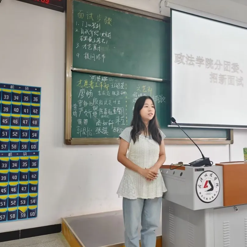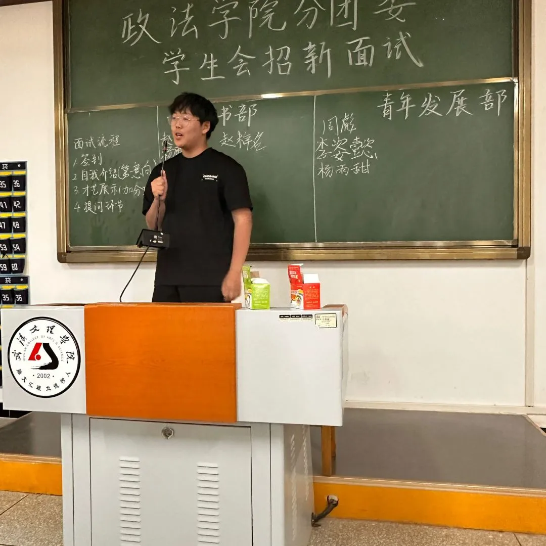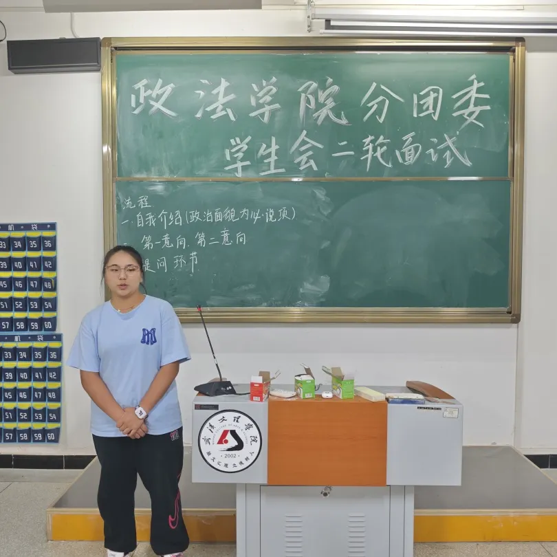十年磨一剑,今朝试锋芒。台上,同学们自信大方地做着自我介绍;台下,部长、主席们的问题也是接踵而至。面对评委的种种问题,同学们并没有感到慌乱,从容不迫地表达自己的想法,或慷慨激昂,或娓娓道来。在本次招新面试中,各位部长们看到了24级同学们的热情与才华,也感受到新生同学们在用自己的方式诠释着对团学的热爱与执着。