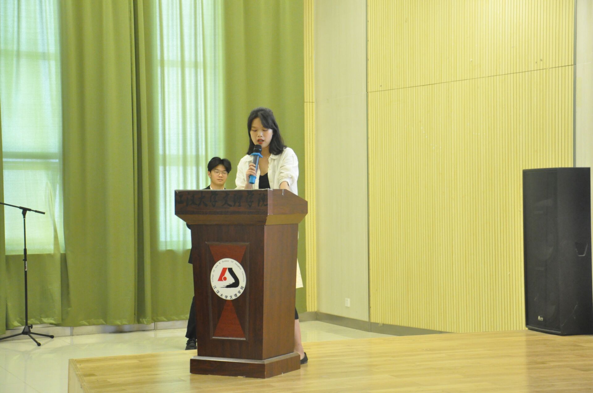 本次活动的压轴戏即将登场—任命仪式。在殷殷期盼下,首先任命的是新一届主席团,他们分别是康冰雪、贾倩、毕昕、肖昌浩然。新任副书记康冰雪作了任职发言,她承诺将继续发扬老主席们的优良传统,弘扬正能量,尽心尽力为团学服务,做到同心同德,同向同行!然后任命的是各部门新一届部长,他们分别是:秘书部寇文静、郭垣垣;组织部金志阳、万嘉玥;宣传部沈欣、袁宇;员工部李金声、戴思琦、陈蓉;文艺部苏小莹、程伟珉、王梦婷;外勤部朱沙杉、杜晓倩、冯哲羽;体育部唐肇宣、蔡云霞。在公布新部长后,现场响起了“排山倒海”般的掌声,相信他们会带着新一届的干事创造团学更辉煌的明天!
