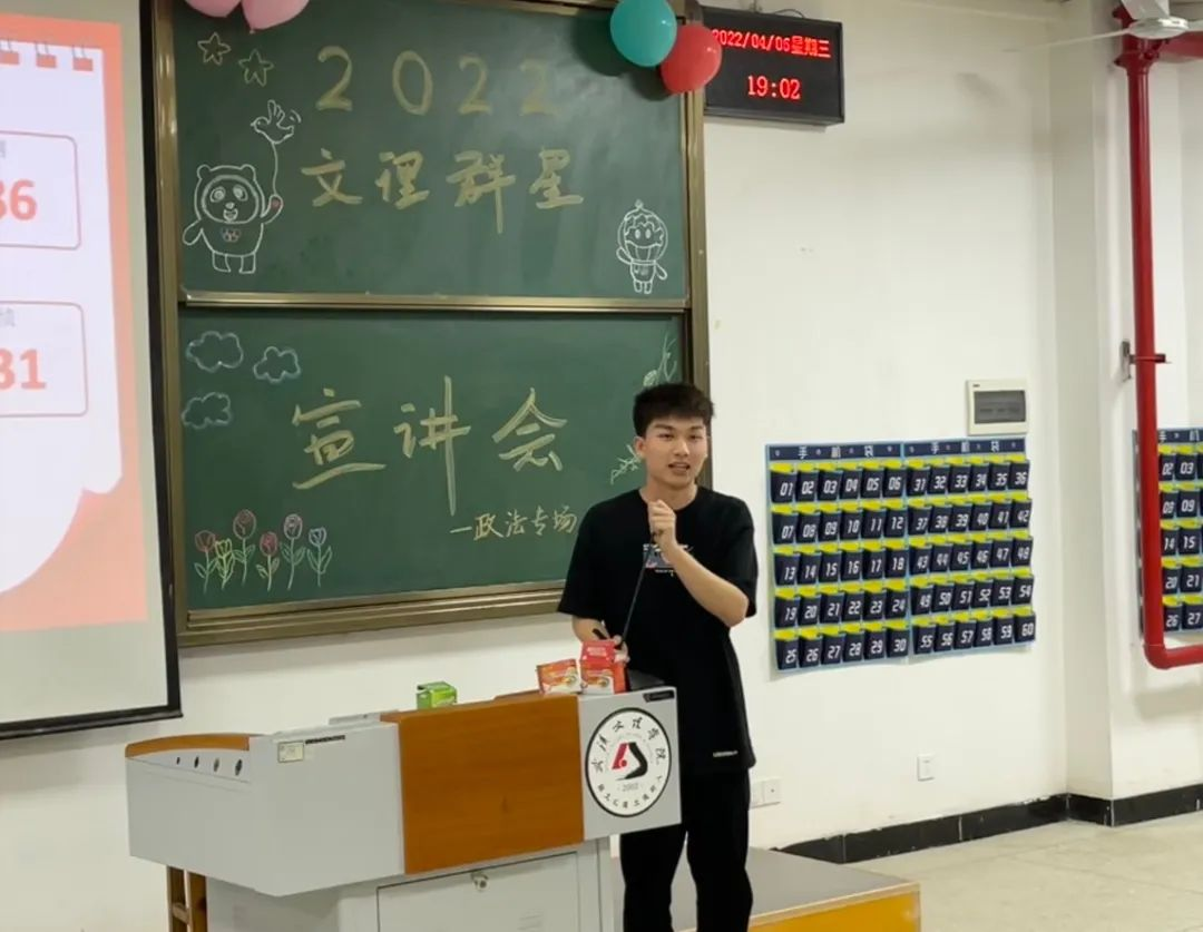 宣讲内容:左珂嘉学姐在学习收获中干货比较多,给大家分享了许多的学习方法。并强调了在学习中,学习的整个过程更重要是思考而不是答案。鼓励大家尝试做个斜杠青年,学会更多的技巧可能会遇见更多的机遇。实战经验中学姐详细讲述模拟法庭呼吁大家积极参加,还要一直保持一定的参与热情。