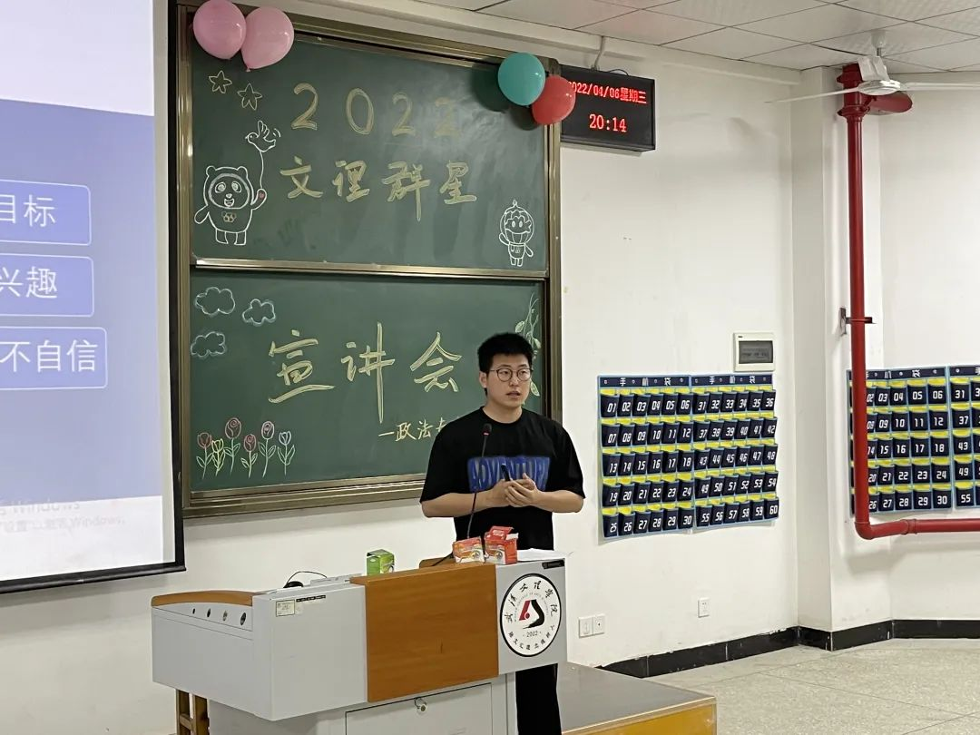 宣讲内容:龚文龙学长希望我们抓好每一门课程,广泛阅读,积极思考,不要有抵触情绪,培养自己的兴趣非常重要,同时也鼓励同学们多参加实践活动以及志愿者,会有意想不到的收获。