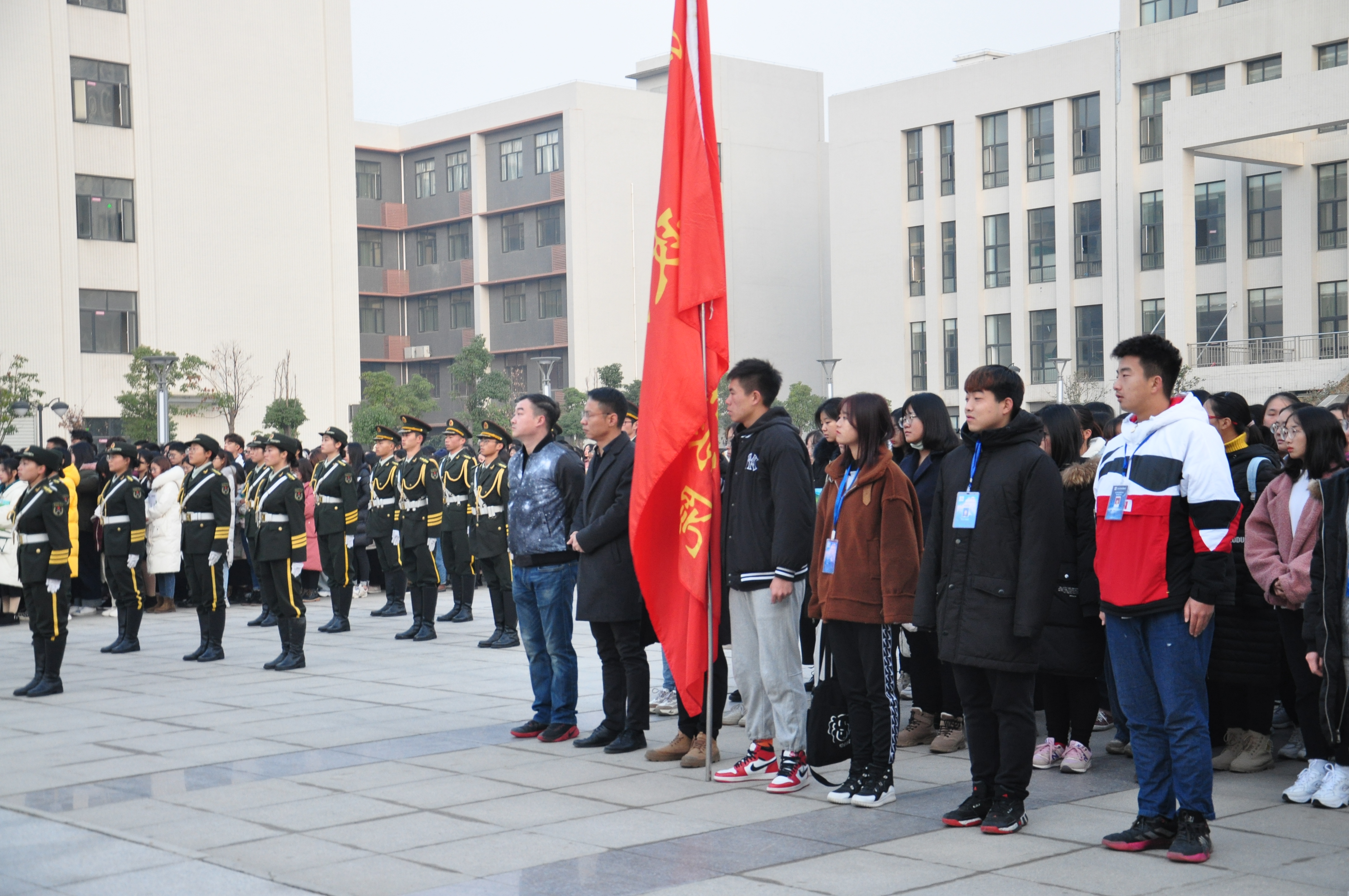 朝霞逐渐向周边扩散,头顶的天色也被那柔和的红色映得淡了,天逐渐亮了,英国威廉希尔英文官网迎来了崭新的一天。为了培养新时代青年的爱国意识,加强思想政治建设,江汉大学文理公司英国威廉希尔英文官网于2019年12月9日清晨6:40在图书馆前隆重举行了升国旗仪式。参加本次升旗仪式的嘉宾有江汉大学文理公司员工处处长曹灵海老师、江汉大学文理公司武装部高翔老师、英国威廉希尔英文官网经理李蔚老师、英国威廉希尔英文官网党总支书记刘超老师、英国威廉希尔英文官网分团委书记杨帆老师,同时到场的有英国威廉希尔英文官网党员、预备党员、积极分子和英国威廉希尔英文官网分团委 员工会全体员工干部以及全体大一同学们,由19级应用心理学四班的杨雨喧同学担任本次升旗仪式的主持人。