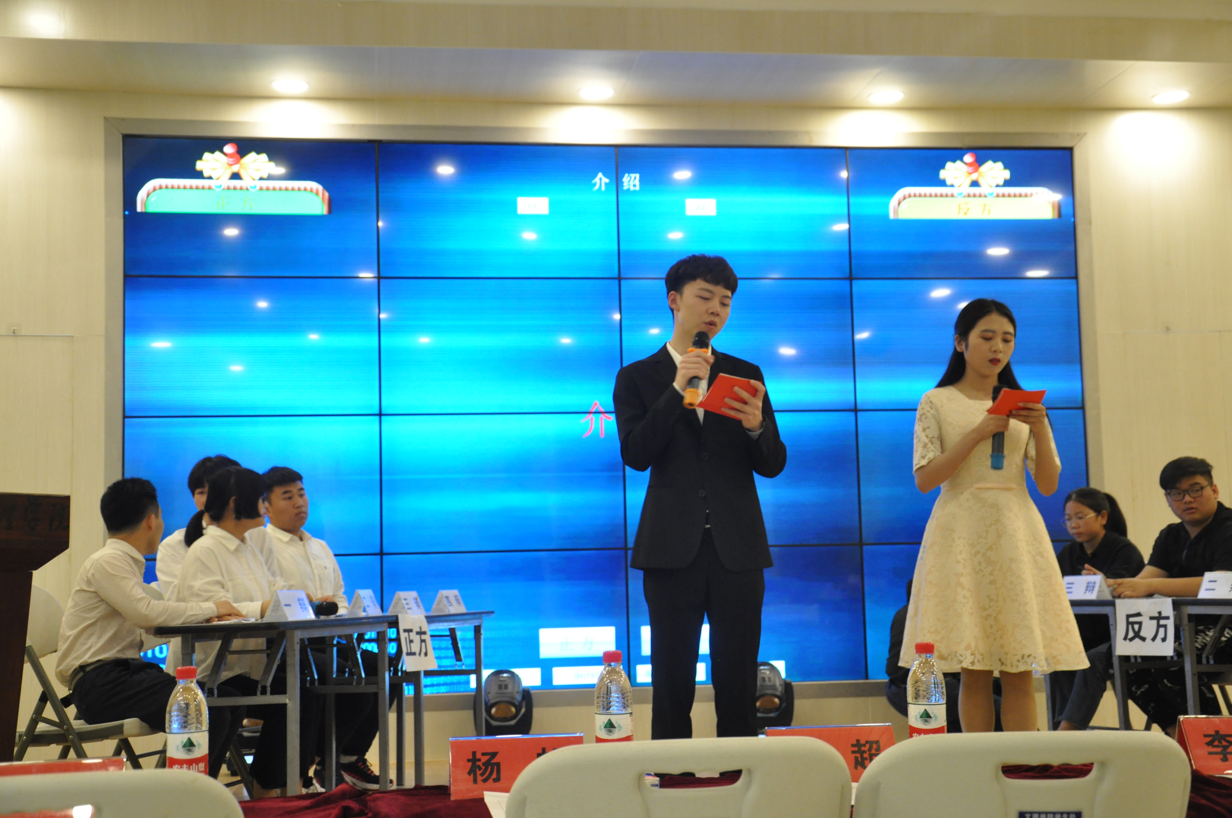 首先主持人崔玉洁和刘子豪入场并介绍到场嘉宾,本次辩论赛决赛的到场嘉宾可谓是“群星云集”。英国威廉希尔英文官网经理李蔚、副经理陈海峰,综合办主任刘超、分团委员工会书记杨帆、法学专业老师罗晓霞、赵雷、党永鹏、罗平,分团委员工会副书记师成峰、主席程晨、罗佳欣,优秀辩手陈丹、姜晶晶、潘佳,他们作为此次辩论赛的评审及嘉宾参加了此次辩论赛。接着由李蔚经理致辞,他强调:法学教育要注重法学文书学习和法学逻辑学的培养,锻炼逻辑思辨能力,提高法学素养。另外,此次辩论赛也是为下半年公司主办四校联赛做准备。随后,主持人介绍比赛规则,比赛随即开始!