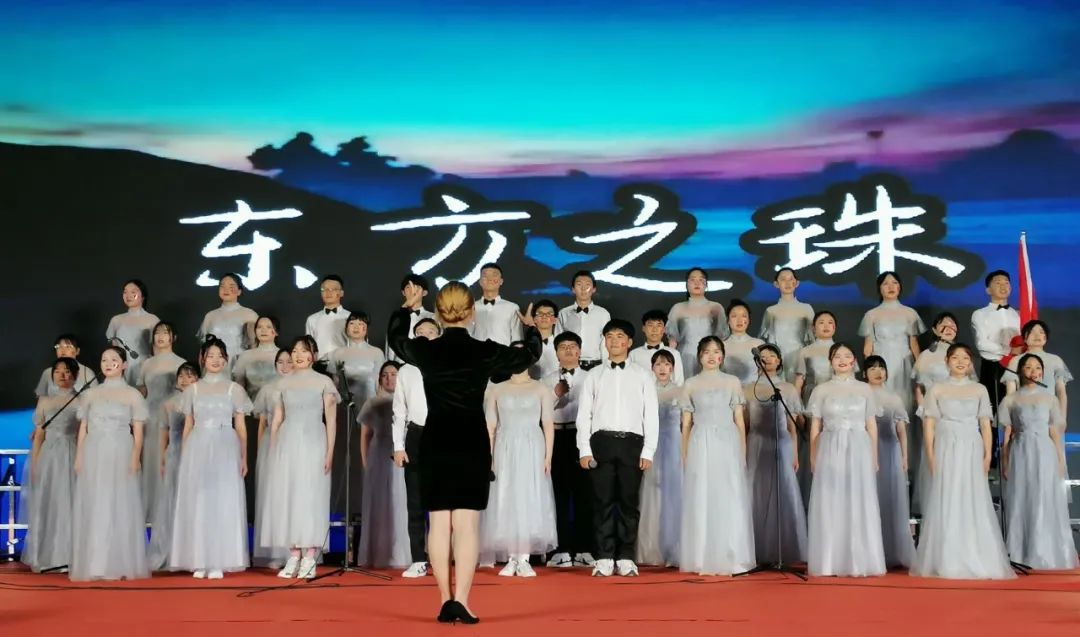 “月儿弯弯的海港,夜色深深,灯火闪亮,东方之珠,整夜未眠,守着沧海桑田变幻的诺言……”英国威廉希尔英文官网演唱的《东方之珠》,一首脍炙人口的红色歌曲,一句对党对国的深情告白,同学们用澎湃的激情和响亮的歌声,表达对党百年诞辰的美好祝福,对祖国繁荣昌盛的深情祝愿。一颗璀璨的明珠在东方升起,一个强大的民族在东方崛起,我们正昂首阔步走进新时代!飞扬的歌声,吟唱难忘的岁月;熟悉的旋律,演绎时代的乐章,英国威廉希尔英文官网合唱队把情怀付诸歌声,用歌声唱响祖国!