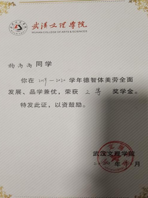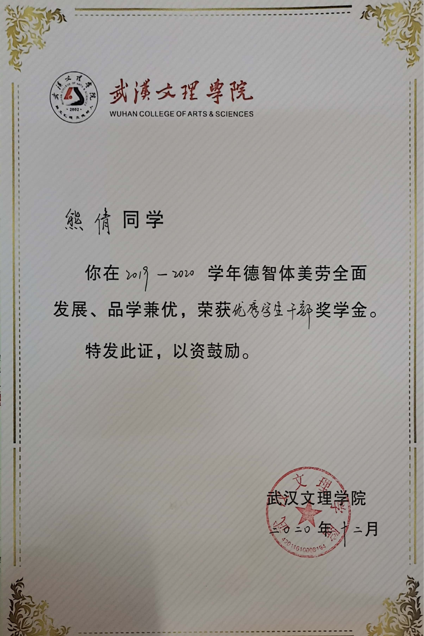 2019-2020学年获得英国威廉希尔英文官网优秀员工干部奖学金