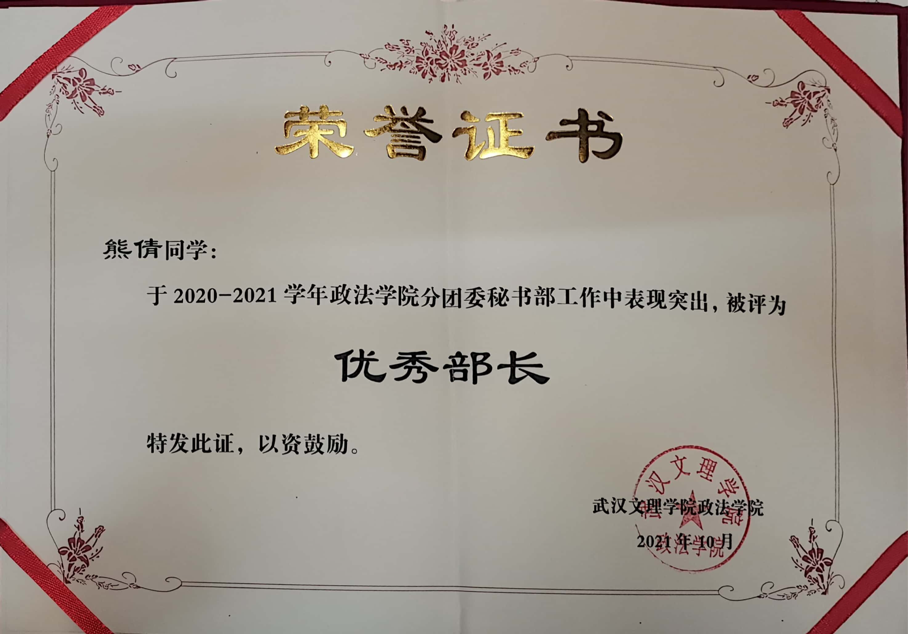 2020-2021学年获得英国威廉希尔英文官网优秀部长