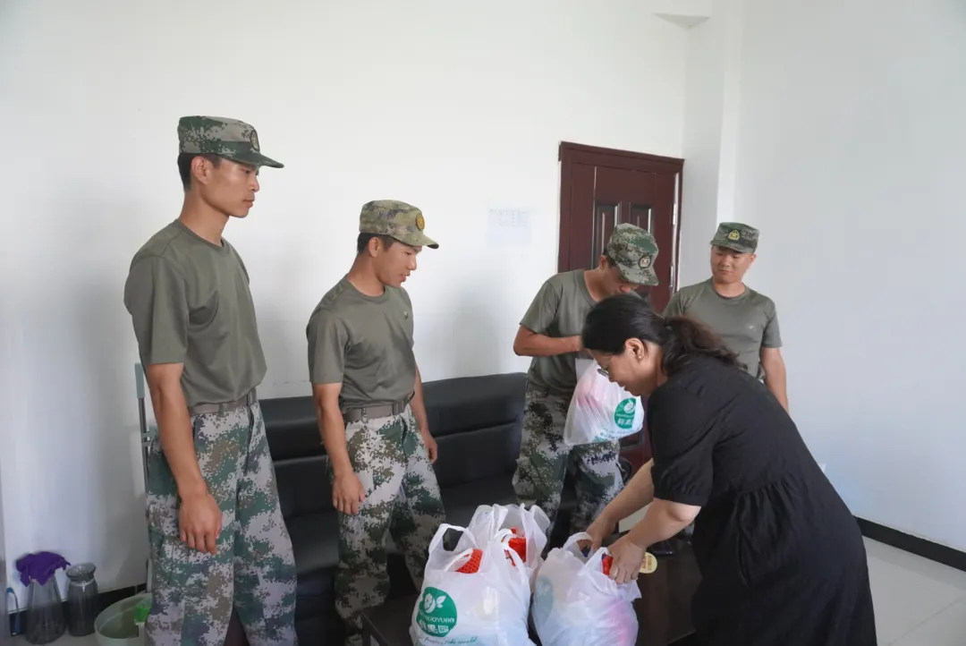 陈海峰经理对各位教官的军训工作日常以及进度进行了详细了解,表示了关心,她表示:军训可以锻炼员工的身体和意志,也可以培养员工的纪律性,对员工之后的学习生活有很大帮助。而教官在军训中起到的引导作用非常重要,训练工作很有意义。她特别叮嘱教官们,天气炎热,要注意身体健康,做好防暑降温准备。最后,陈海峰经理对教官们的工作表示了充分肯定,并对各位教官提出表扬,亲自为每位教官送上了精心准备的慰问礼,与他们合影留念。