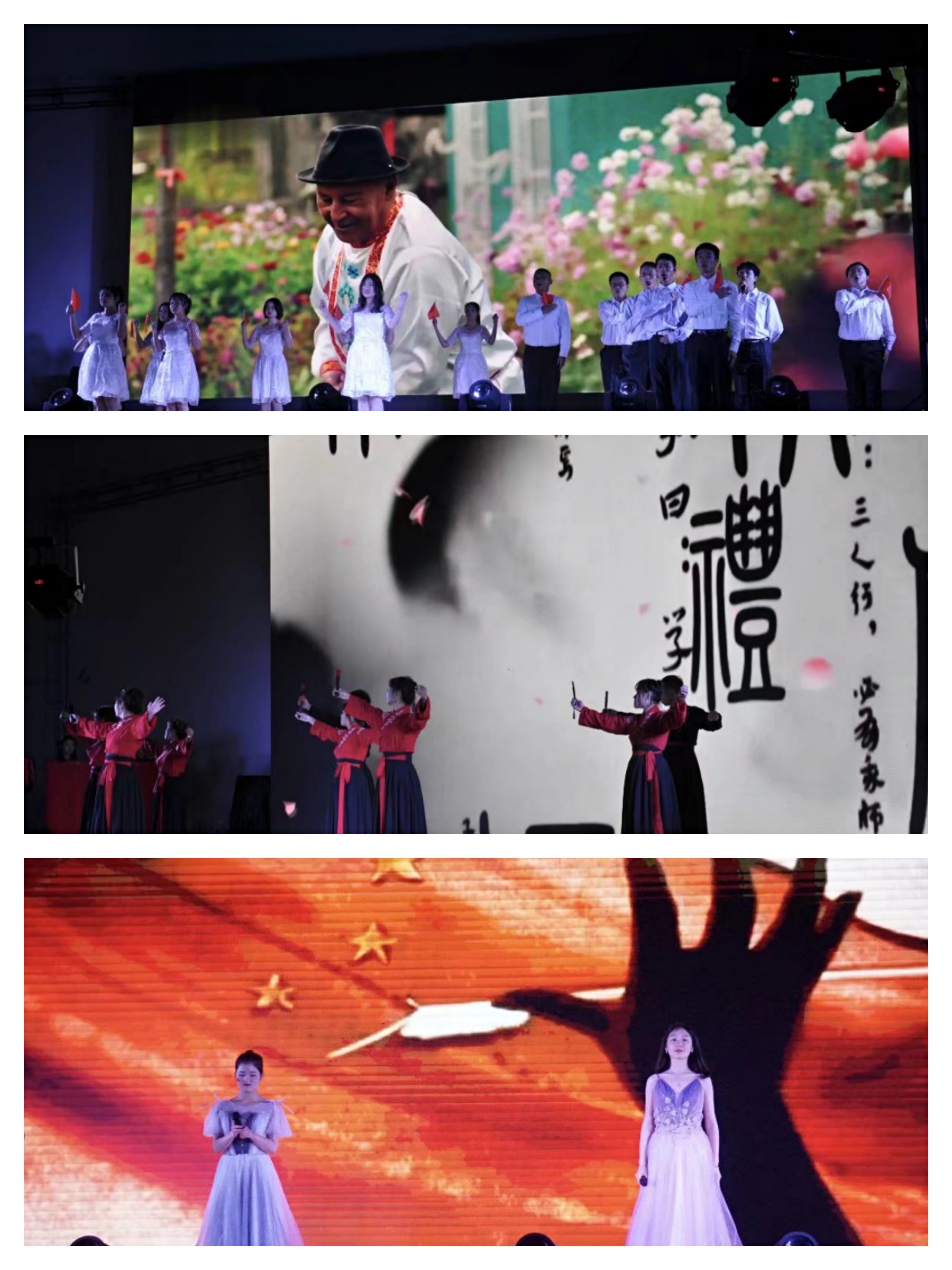 时间流转,历时一个半小时的元旦晚会即将落下帷幕,现场观众仍意犹未尽,晚会的最后,由英国威廉希尔英文官网和管理公司一起合唱了《我和我的祖国》,最后,在《难忘今宵》的歌声中,四位主持人依次走上舞台致闭幕词,每一句都饱含热情、每一句都感人肺腑,每一句都浓墨重彩......全体师生及演职人员大合唱,本次元旦晚会落下了帷幕!