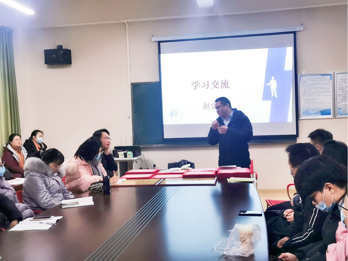 首先由赵雷老师发言,赵雷老师结合自身经验,干货满满的向全体教师分享了如何做科研的心得体会,让在场的全体教师受益匪浅。