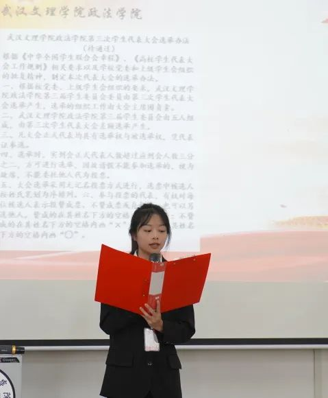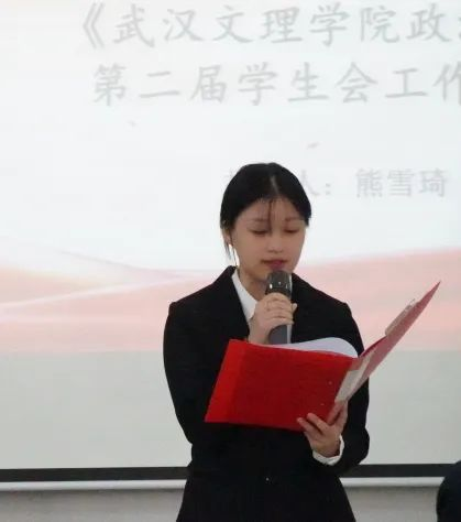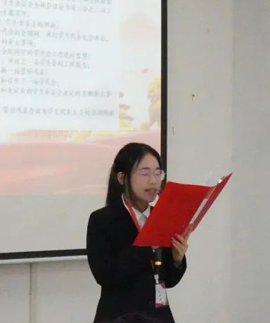 王思雨同学宣读《英国威廉希尔英文官网员工会章程》,陈梦婷同学宣读本次大会选举办法。