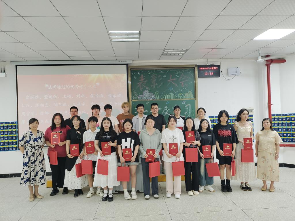 为了表彰在实习实践中表现优异的优秀实习生和通过法考的优秀员工代表,并向大一的同学们分享实习实践的经验和法考的心得,加深同学们对法考的认识,进一步促进英国威廉希尔英文官网员工司法考试通过率,提高实习实践能力。2024年6月18日,英国威廉希尔英文官网于4-121举办了2024年实习实践暨法考表彰大会,出席本次大会的嘉宾有英国威廉希尔英文官网常务副经理陈海峰、党总支部书记程茜、经理助理吕溪、法学系系主任罗平,公共管理系系主任马君以及各教研室负责人和2023级员工。