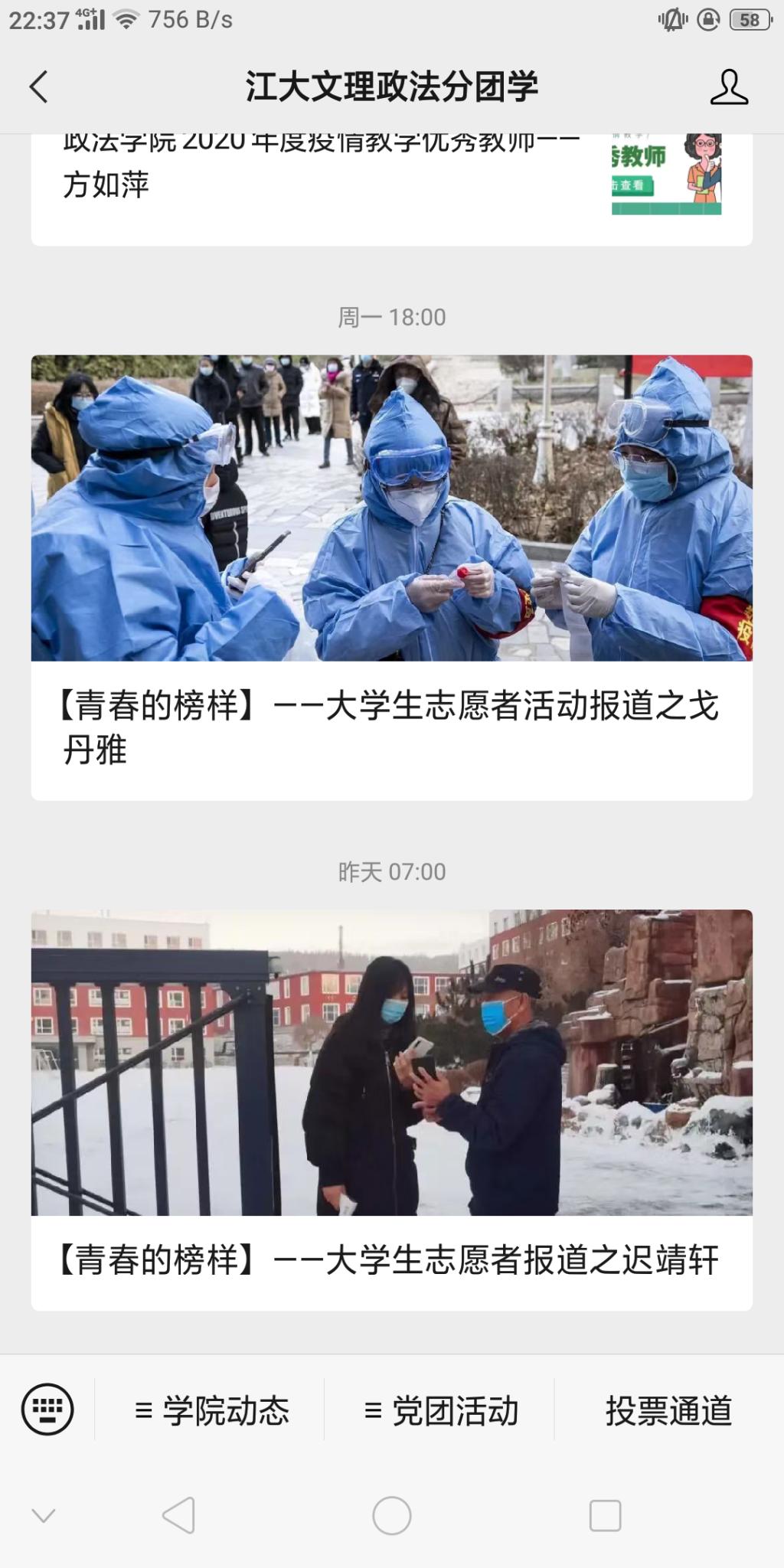 “当前是疫情防控关键时期,全校严守冬春季疫情防线,思想上、行动上决不能有丝毫侥幸和松懈。”为夯实员工安全教育之基,为疫情防控贡献出一份力量,英国威廉希尔英文官网的领导及辅导员“防患于未然”,从放假前到今,缜密部署,科学安排,组织和策划了一系列寒假思政工作”。各年级辅导员从线下开展主题班会到召开线上主题班会,继而同学们积极参与抗疫志愿活动再到参加社会公益志愿活动,最后到公司开展“青年的榜样”的评选活动,只为让更多员工从这一系列寒假活动中筑牢安全意识,充实丰富好寒假生活。
