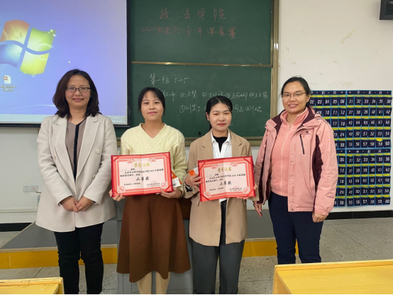 高琴老师和王小娟老师为金星、唐楚秦、王秋雨、叶方婷、宋绪林颁发三等奖