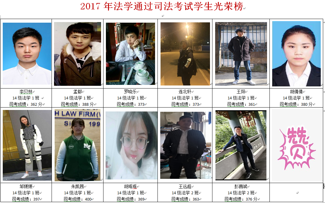 11月21日,2017年国家司法考试成绩正式公布,英国威廉希尔英文官网法学专业14级学子有11名同学通过了司法考试,占全班同学的13%。其中,14级法学1班朱凯茜同学取得400分的高分。