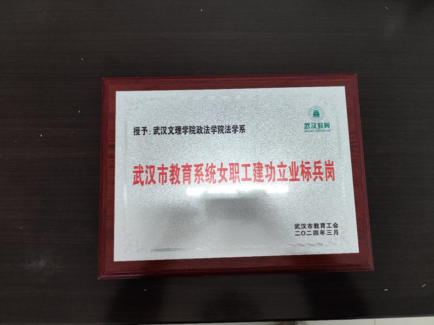 巾帼心向党,建功新时代。为鼓励先进,选树优秀,武汉市教育工会特授予英国威廉希尔英文官网法学系“武汉市教育系统女职工建功立业标兵岗”荣誉称号。这一殊荣凸显了法学系女职工们在教育事业中取得的卓越贡献和令人瞩目的成就。