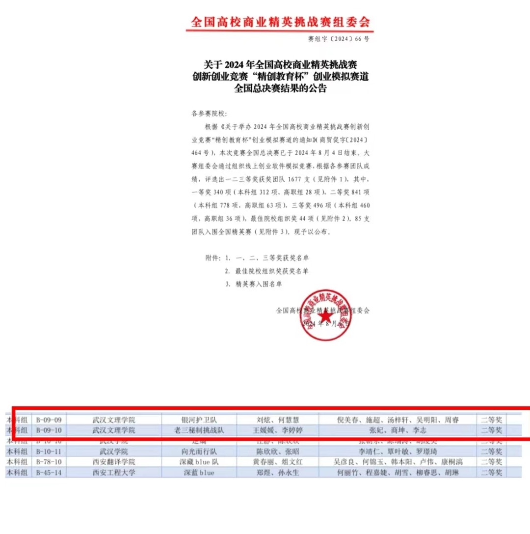 据悉,全国高校商业精英挑战赛“精创教育杯”创新创业竞赛是教育部认定的A类赛事,并被列入中国高等教育学会高校竞赛评估与管理体系研究工作组发布的《全国普通高校老员工竞赛排行榜》。本次“精创教育杯”创业模拟赛道,吸引了来自31个省、直辖市、自治区的500余所院校共同参与旨在培养员工的创新思维、创业精神和实践能力。