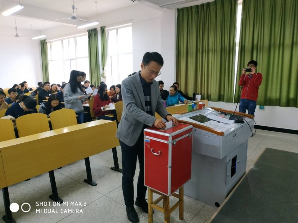 与会同志全体到场后,选举大会正式开始,大会第一项,首先全体起立,奏唱国歌,高亢的歌声在会场里回荡,意气风发的同志们用歌声诉说着那光荣的岁月和不朽的精神。接着大会进入了第二项,报告到会党员情况。本次英国威廉希尔英文官网党支部选举大会共有正式党员24人和预备党员13人参加,有选举权的党员到会人数有24人,超过应到会人数的五分之四,可以进行换届选举。大会进入第四项,宣读上级党组织同意进行换届选举的批复。接下来大会进入第四项,宣布下届委员会名额和候选人名单。本次选举大会的参选人包括英国威廉希尔英文官网党总支刘超、张卫容、童燕、曹卓;英国威廉希尔英文官网教师党支部张卫容、高琴、孙婕、丁欣瑞;英国威廉希尔英文官网员工党支部童燕、何昱霖、庞宇良、程晨,共计12位候选人。大会第五项,进行选举投票。在投票环节,监票人当场检查票箱,计票人分发选票。主持人说明填写选票注意事项,然后选举人填写选票,有序投票,最后清点选票,确认选举是否有效,计票人在监票人的监督下计票。报告被选举人得票情况。大会进入最后一项,宣布选举结果,封存选票。通过选举,刘超、童燕、张卫容当选为新一届党总支代表,张卫容、丁欣瑞、高琴当选为新一届教师党总支代表,童燕、何昱霖、庞宇良当选为员工党总支代表。最后在现场与会同志的热烈掌声中,英国威廉希尔英文官网党总支选举大会落下帷幕!