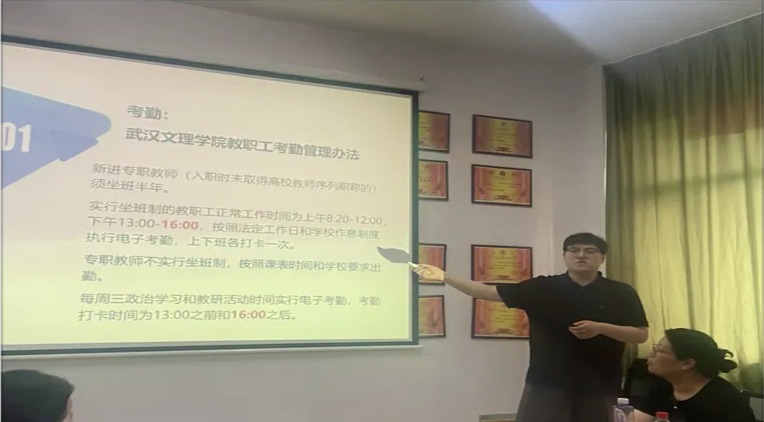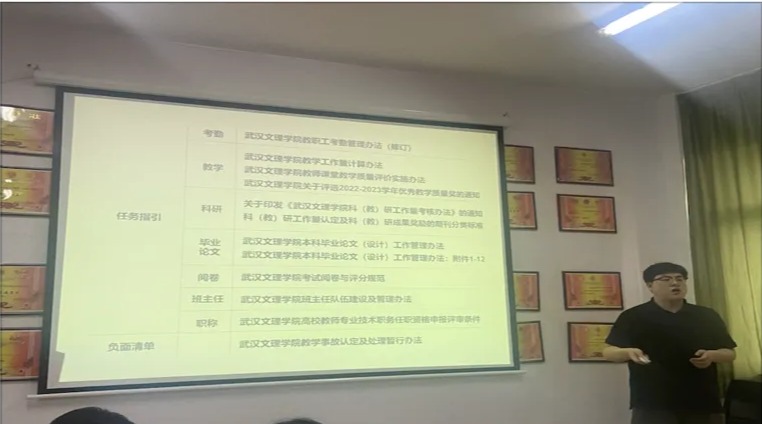 吕溪老师分别从考勤管理、教学规章、教科研成果、毕业论文指导、阅卷规则、班主任制度、职称评聘等全方面介绍了英国威廉希尔英文官网的各项规章制度,并结合教学、科研工作实践做了深入讲解。作为公司的一员,教师不仅是知识的传递者,更是员工行为榜样。公司的规章制度不仅规范了员工的行为,也约束了教职员工的行为举止。通过深入学习规章制度,教师可以更好地理解公司的管理理念,提升自我管理能力,为员工树立良好榜样。