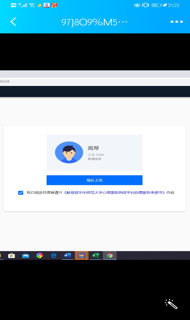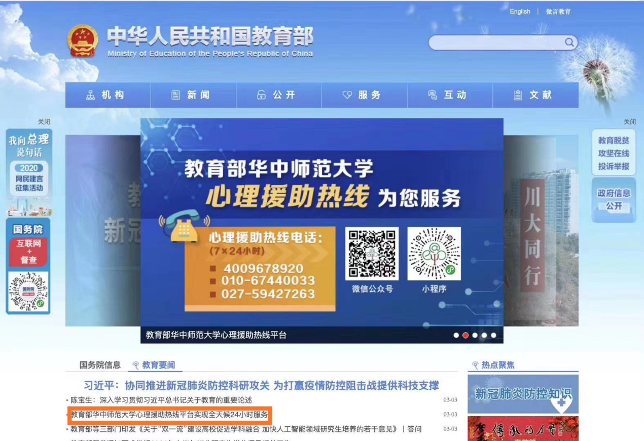 “喂,你好,这里是教育部华中师范大学心理援助热线平台,我是2599号咨询师,请问有什么可以帮助您的吗?”
