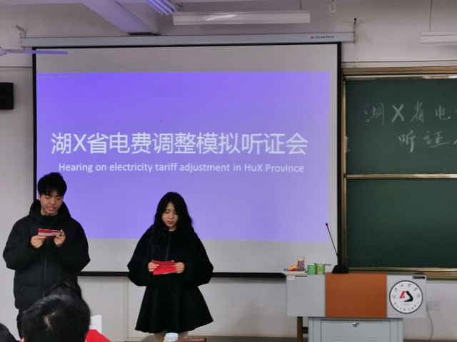 听证是行政的重要举措,听证之作用,涵摄社会治理之体系,听证之意义,在于不断优化行政结构,完善行政治理,健全行政方式,维护社会制度,本次举行的模拟听证会是自法学系开设以来,举办的首场模拟听证会,可谓“首秀”。在本次听证会正式举行之前,在专业课老师的精心指导下,各班同学利用课余时间积极讨论,对听证案例及内容进行深入剖析,随后进行人员分工,熟悉台词,反复演练,最后在实训课堂上完成听证程序。此次听证会涉及的内容是关于“用水、用电、用气价格调整”的,对与生活息息相关的水电气的价格是否应该调整展开听证,同学们通过法律条文、规章制度、生活常识、专业研究、舆论导向等多个角度对案例进行听证,大家更加了解了听证程序,更加明确了法学学习的目的。