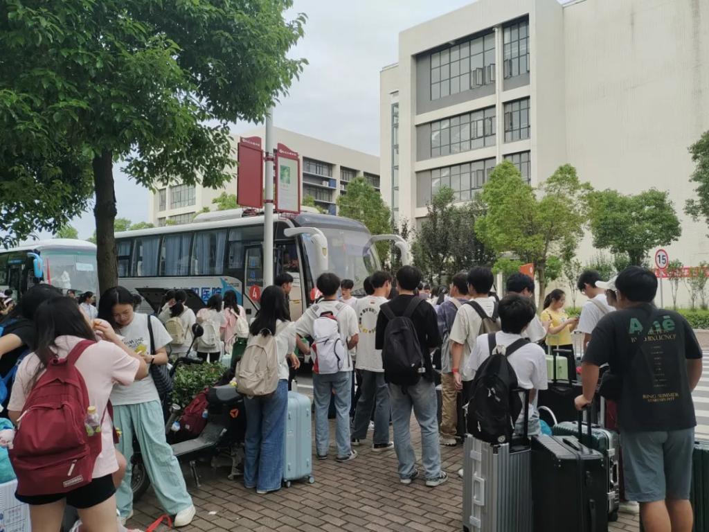 授旗仪式结束后,同学们有序地放置行李、上车,然后满怀激情地踏上了劳动实践之路。