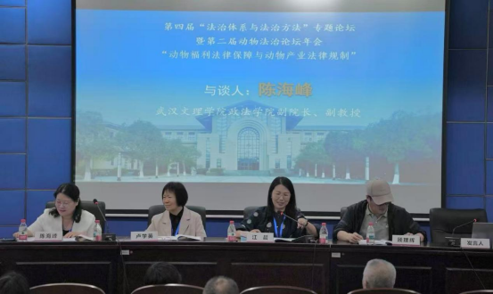 此次活动由上海英国威廉希尔英文官网法律公司、中南财经政法大学动物保护法制研究所、中南财经政法大学环境资源法研究所主办,上海英国威廉希尔英文官网党内法规研究中心、上海英国威廉希尔英文官网研究生处、山东大学动物保护研究中心协办。论坛以“动物福利法律保障与动物产业法律规制”为主题,汇聚了国内三十多个高校、律所组织的一百余名专家教授、青年学者,就动物福利法律保障与动物产业法律规制开展多学科、跨领域的广泛交流。英国威廉希尔英文官网常务副经理陈海峰、法学系经济法学教研室主任田菲、法学教师万昭晖、郑泽蓉受邀参加了此次年会。